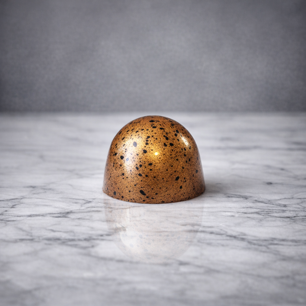 Deze bonbon is gemaakt van melkchocolade uit Peru (50%). Binnenin vind je een zachte vulling van Nutella met een lichte karameltoets. Eenvoudig en romig, met een subtiele zoetheid.